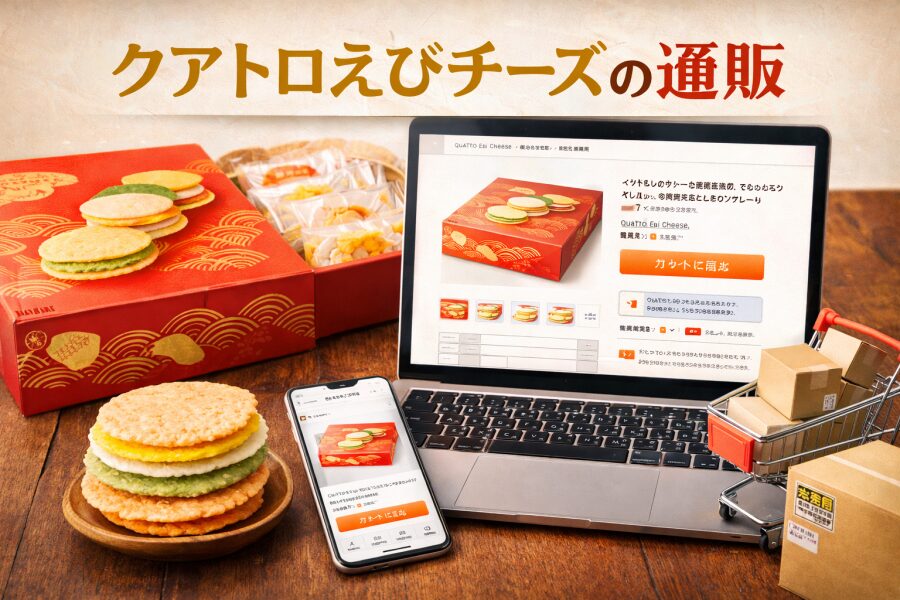 「クアトロえびチーズ」だけでは似た名前の商品と混同される場合もあります。 「えび味のチーズせんべい」「個包装の箱入り菓子」といった補足を加えると、探してもらいやすくなります。
